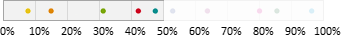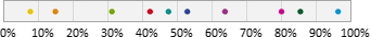 Auswahl-Wahrscheinlichkeit in ProzentGeben Sie einen Prozentwert zwischen 0 und 100% ein. Mit dieser Wahrscheinlichkeit gehört ein Abonnent zur Zielgruppe. Beispielsweise bewirkt ein Wert von 25%, dass ungefähr (siehe Hinweis) ein Viertel aller Abonnenten zur Zielgruppe gehören. Dazu verteilt Emma alle Abonnenten auf einem Zahlenstrahl zwischen 0 und 100%. Bei 10 "bunten" Abonnenten könnte eine Variante so aussehen: