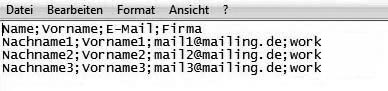 Step 2 – File StructureIn order to correctly import your addresses, you can adjust the parameters of the file that has to be imported in this step. Adjust 'Field Separator', 'Text Separator' and 'Character Set' until the first subscribers of your address list are shown correctly in the thumbnail. Usually, semicolon as a 'Field Separator' and no comma as a 'Text Separator' have to be used. You may check your CSV file to that effect by opening the file in an editor and differentiating: